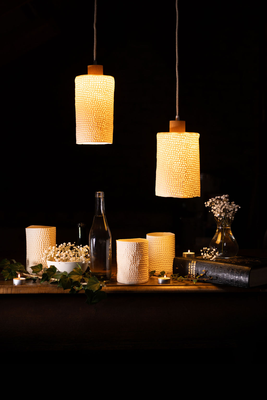 Mes luminaires en porcelaine jouent avec la lumière pour créer des ambiances douces et apaisantes: Chaque pièce, aux lignes épurées, révèle la finesse de la porcelaine et transforme l'éclairage en un élément décoratif raffiné. Ces luminaires apportent une touche poétique et élégante à tout intérieur, tout en étant fonctionnels.