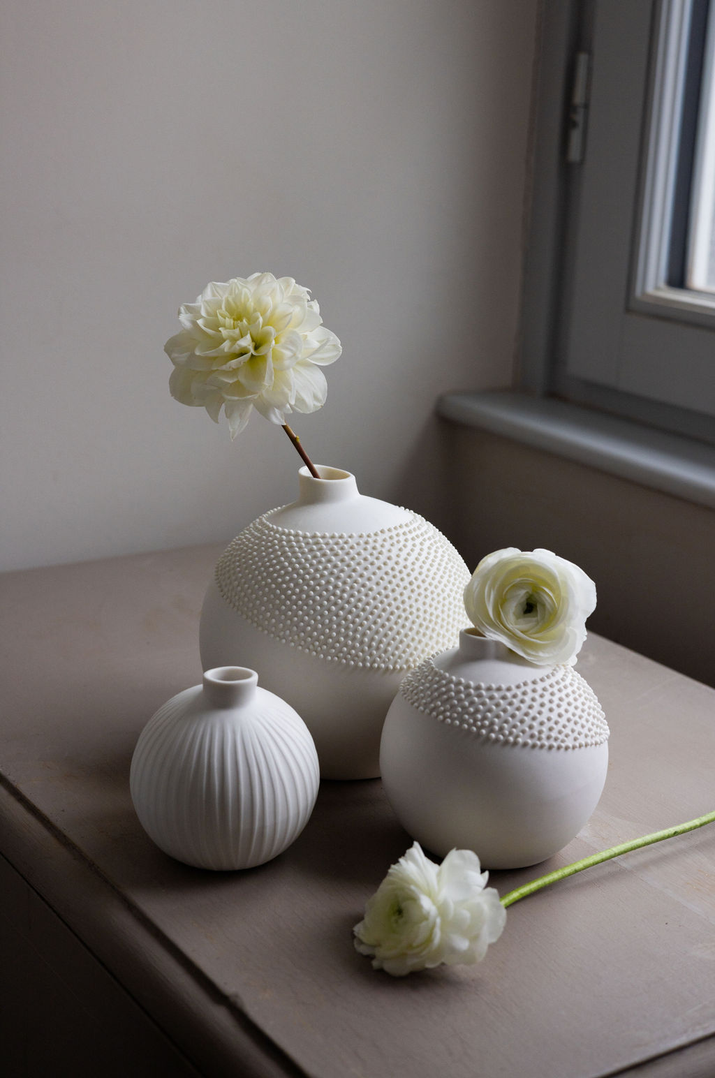 Ma collection d'objets déco se compose de vases et soliflores, pensés pour sublimer un bouquet discret ou embellir un espace par leur simple présence. Les formes simples et élégantes mettent en valeur la porcelaine, tandis que leur texture douce invite au toucher. Ces pièces s'intègrent naturellement dans tout type d'intérieur, modernes et intemporelles.